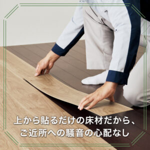 上貼り用床材を使えば、マンション特有の条件にも対応しながら、短期間でリフォームが可能です。